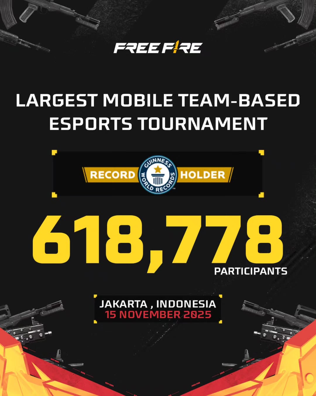 Indonesia Arena menjadi saksi FFWS Global Finals 2025, turnamen ini berhasil mengumpulkan 618.778 peserta dari babak kualifikasi hingga final. Perayaan dan pemecahan rekor ini diumumkan oleh adjudicator resmi Guinness, Emi Saito. Rekor yang dipecahkan ini menjadi pembuktian tersendiri untuk game Free Fire sebagai game yang menyediakan wadah kompetisi untuk banyak pemain mereka yang tersebar dari berbagai belahan dunia.