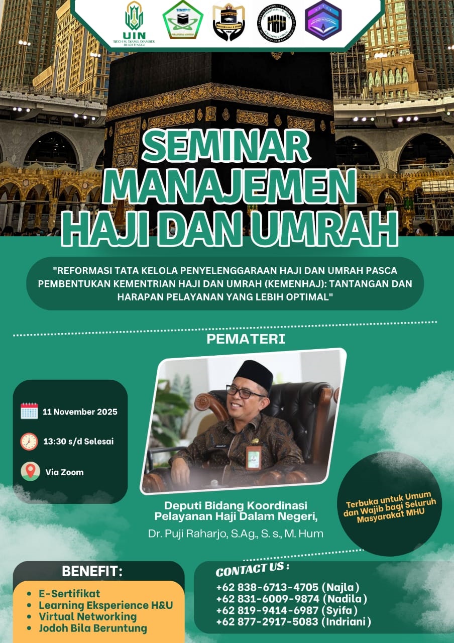 Seminar ini digelar Prodi dan HMPS Manajemen Haji dan Umrah (MHU) UIN Bukittinggi.